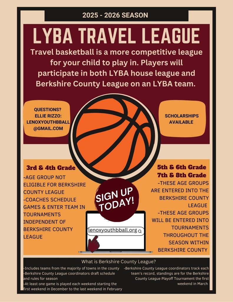 Lenox Youth Basketball Association has been serving our community for the past 36 years. We are solely run on volunteers who care about the development of our basketball players. Be sure to check out our new website for updates, events, and team information!